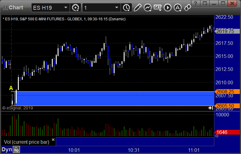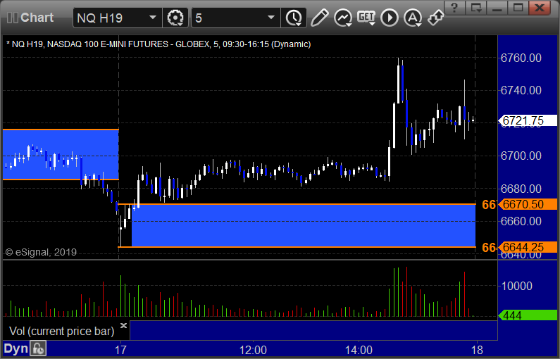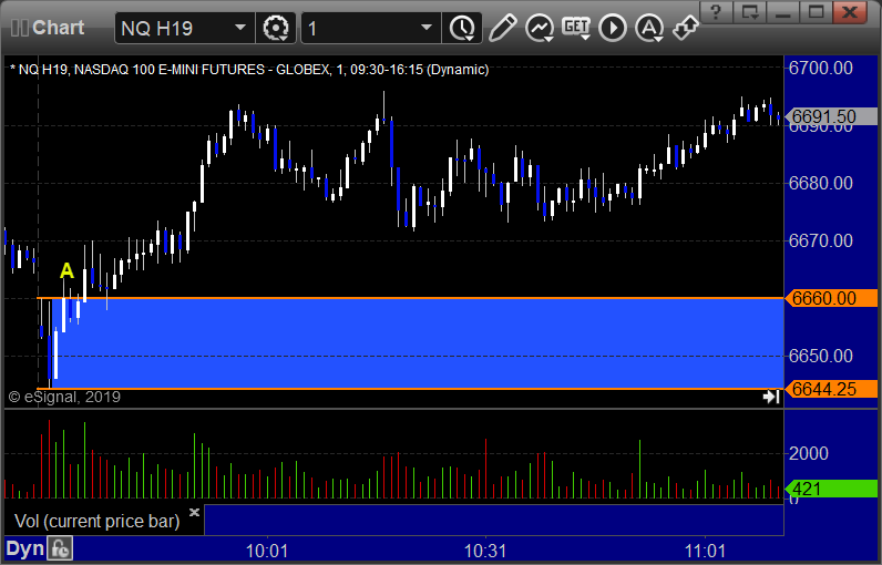NQ Opening Range Play triggered long at A and worked, but too far out of range to take:
