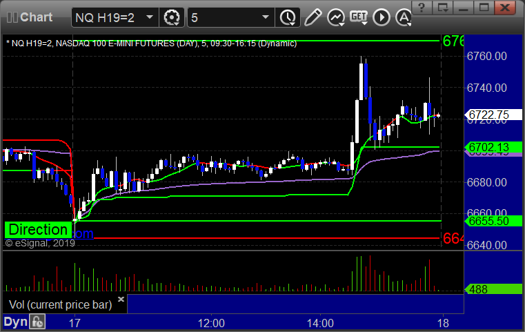 As usual, let’s start by taking a look at the ES and NQ with our market directional lines, VWAP, and Comber on the 5-minute chart from today’s session: