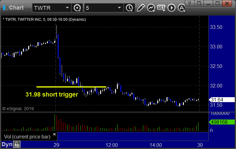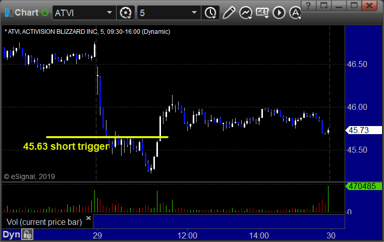From the Messenger/Tradesight_st Twitter Feed, ATVI triggered short (with market support) and worked: