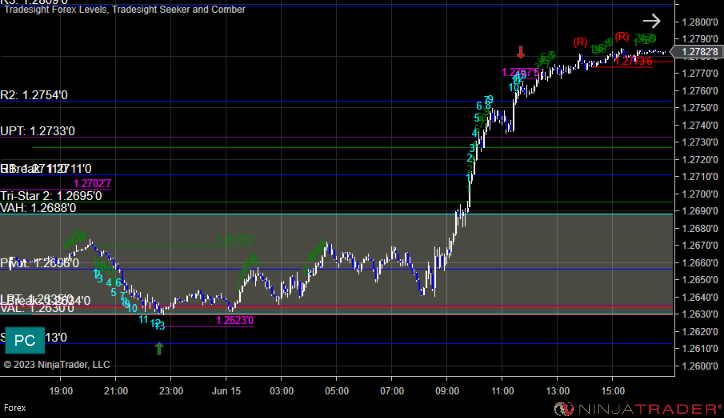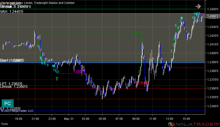 We came into the session short the GBPUSD from the prior session, and that stopped over VAL in the money. No new triggers.