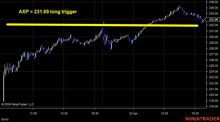 These are the Tradesight calls that triggered, Rich's AXP triggered long (no market support due to first 5-minutes) and stopped. Worked if you took it again later in the day:
