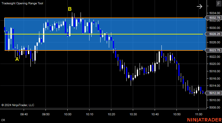 ES Opening Range Play, triggered long at A and stopped, triggered short at B and worked enough for a partial: