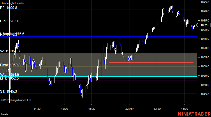 ES Opening Range Play, triggered short at A and worked enough for a partial. Triggered long at B and stopped under the midpoint:
