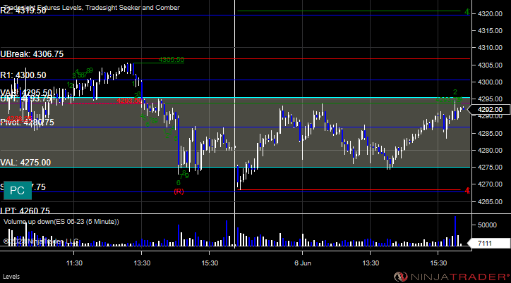 Additional Futures Calls, ES triggered long above lBreak and stopped for 7 ticks stop loss: