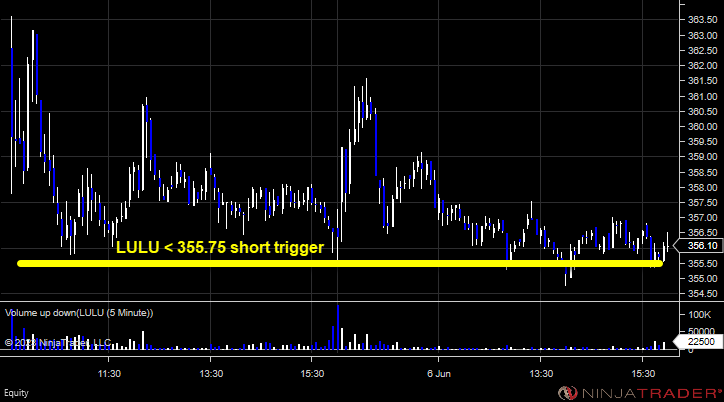 These are the Tradesight calls that triggered, LULU triggered short (without market support) but didn't go enough either way to count:
