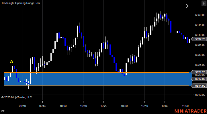 ES Opening Range Play, triggered long at A but too far out of range to take:
