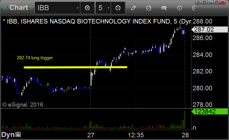 Rich's IBB triggered long (ETF, so no market support needed) and worked:
