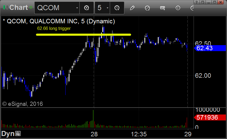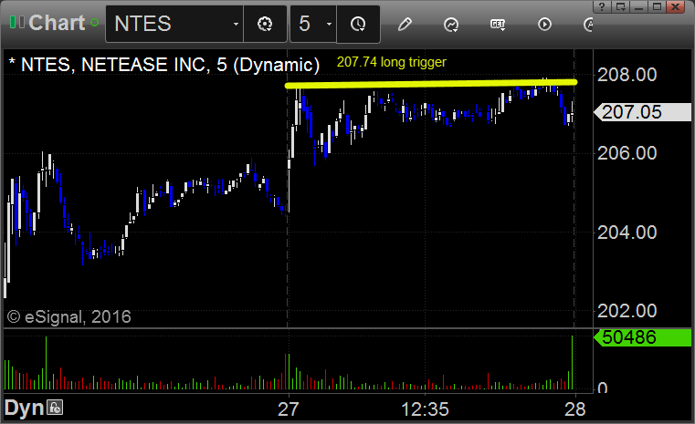 With each stock's recap, we will include a (with market support) or (without market support) tag, designating whether the trade triggered with or without market directional support at the time. Anything in the first five minutes will be considered WITHOUT market support because market direction cannot be determined that early. ETF calls do not require market support, and are thus either winners or losers.