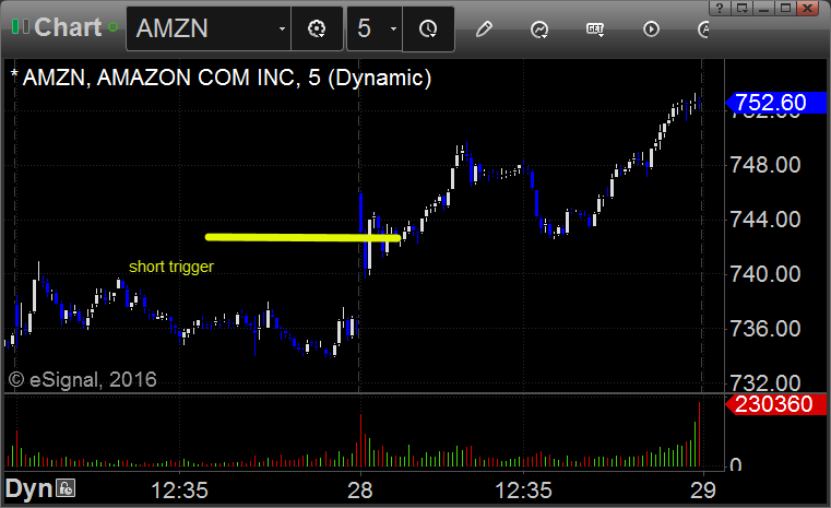 From the Messenger/Tradesight_st Twitter Feed, Rich's AMZN triggered short (with market support) and worked: