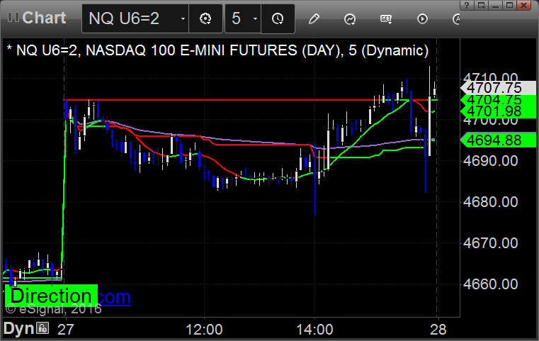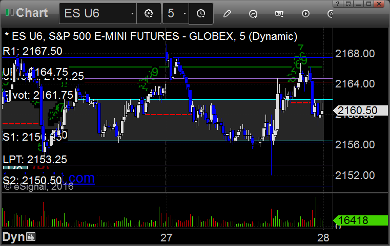 As usual, let's start by taking a look at the ES and NQ with our market directional lines, VWAP, and Comber on the 5-minute chart from today's session: