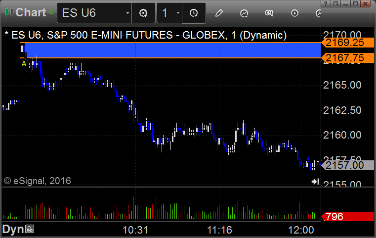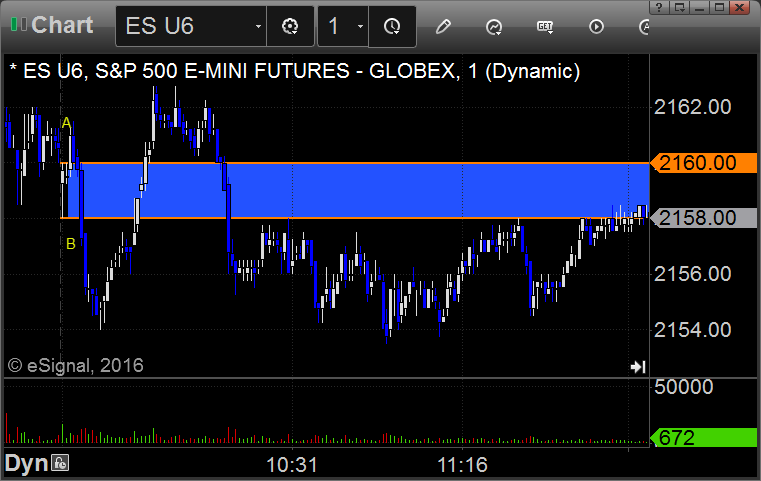 ES Opening Range Play triggered long at A and stopped, triggered short at B and worked: