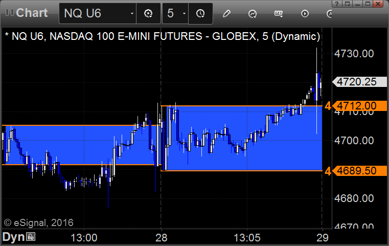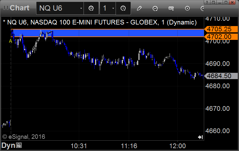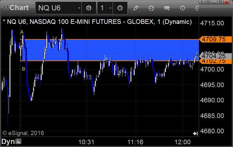 NQ Opening Range Play triggered long at A and stopped, triggered short at B and worked: