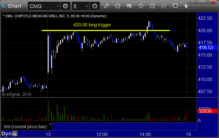 With each stock's recap, we will include a (with market support) or (without market support) tag, designating whether the trade triggered with or without market directional support at the time. Anything in the first five minutes will be considered WITHOUT market support because market direction cannot be determined that early. ETF calls do not require market support, and are thus either winners or losers.