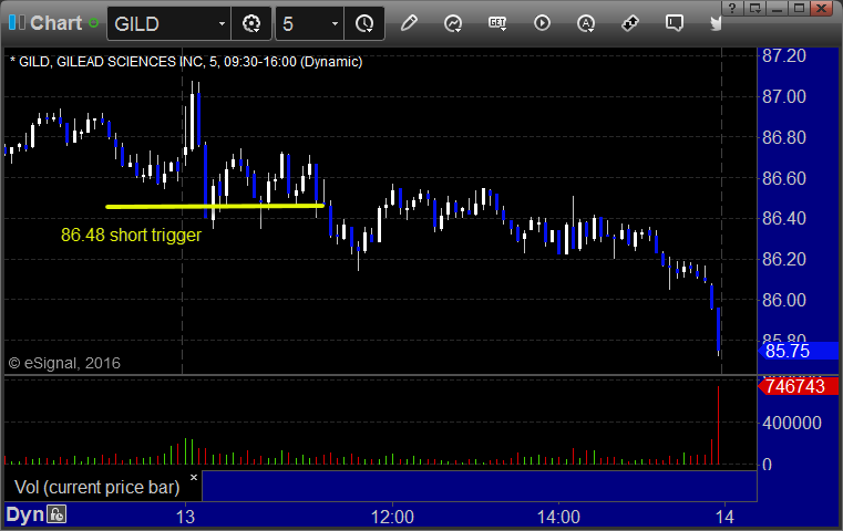 From the Messenger/Tradesight_st Twitter Feed, Rich's GILD triggered short (with market support) and ultimately worked but took a while: