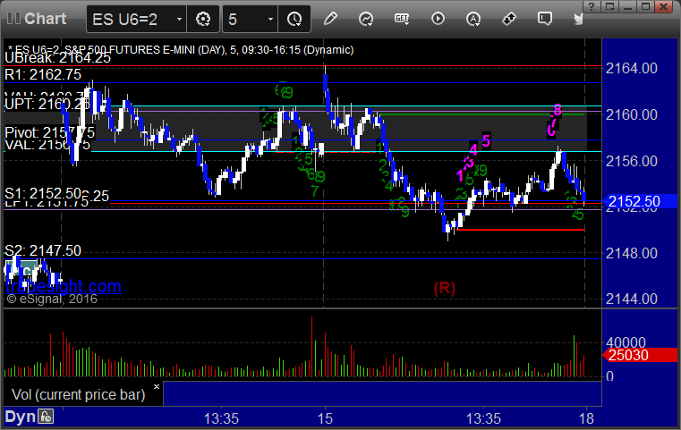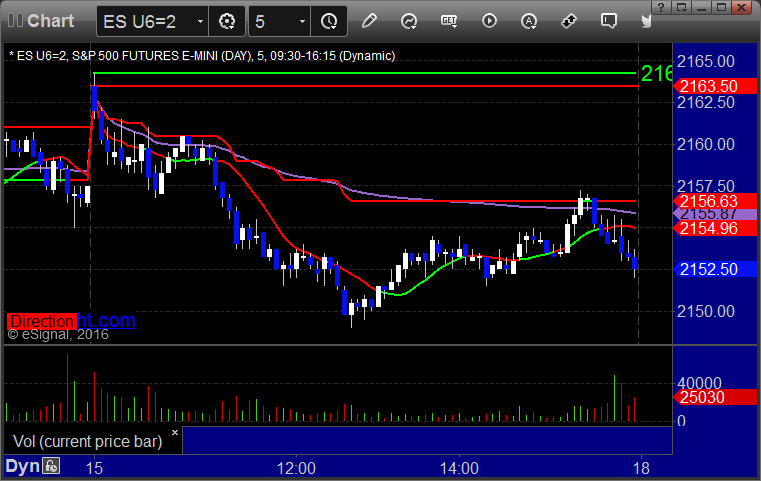 As usual, let's start by taking a look at the ES and NQ with our market directional lines, VWAP, and Comber on the 5-minute chart from today's session: