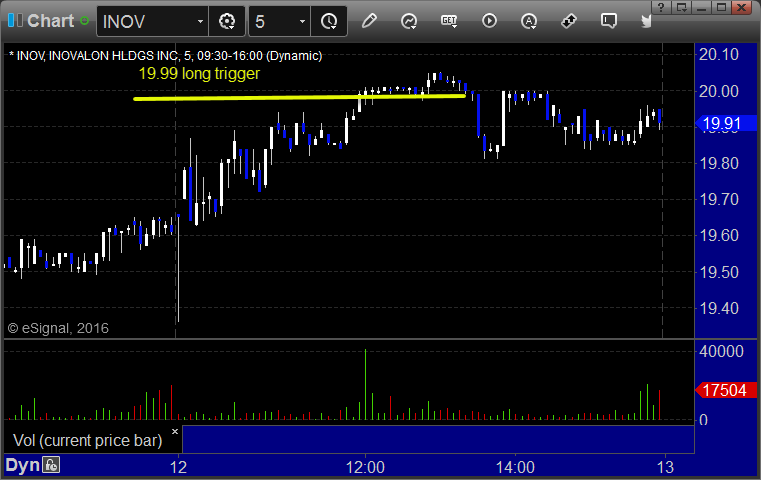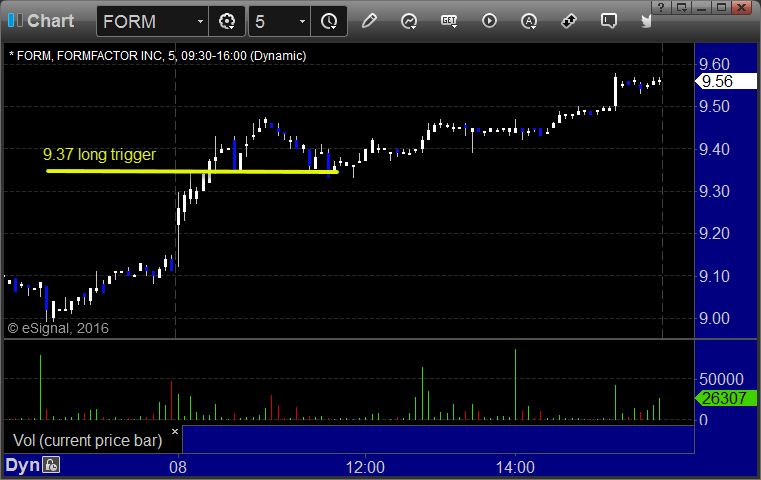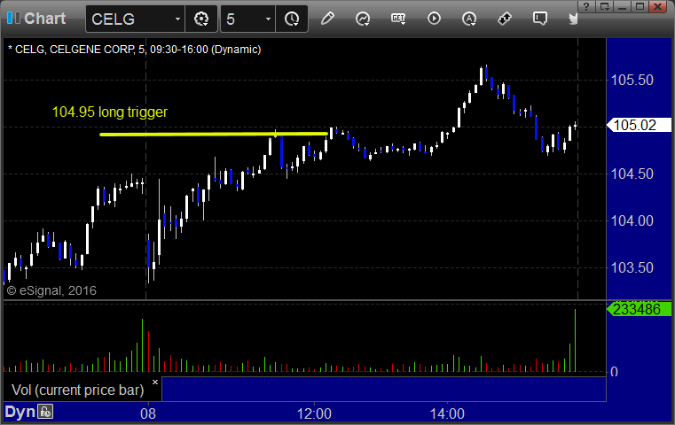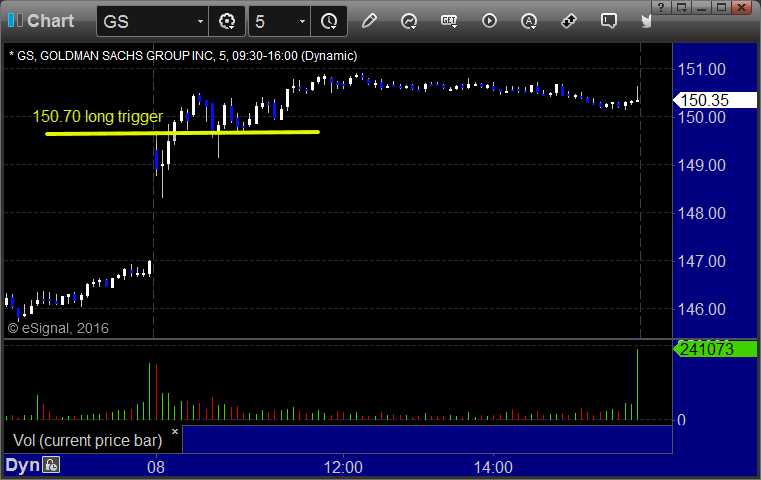 With each stock's recap, we will include a (with market support) or (without market support) tag, designating whether the trade triggered with or without market directional support at the time. Anything in the first five minutes will be considered WITHOUT market support because market direction cannot be determined that early. ETF calls do not require market support, and are thus either winners or losers.