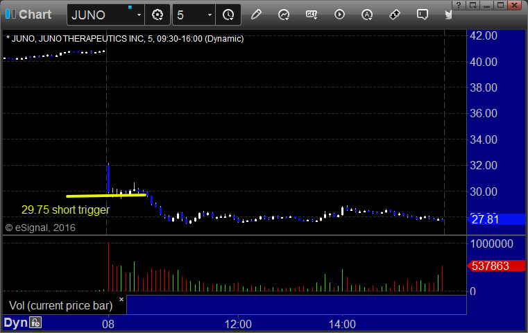 His JUNO triggered short (without market support) and worked enough for a partial: