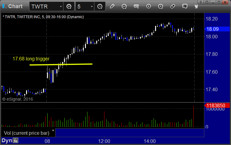 From the Messenger/Tradesight_st Twitter Feed, Rich's TWTR triggered long (with market support) and worked great: