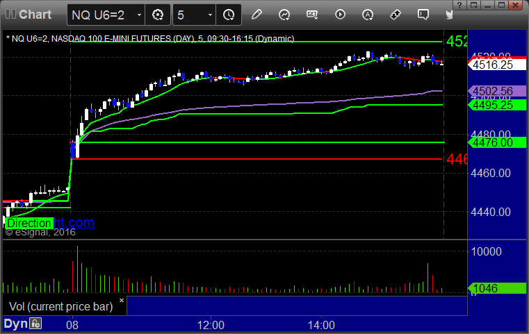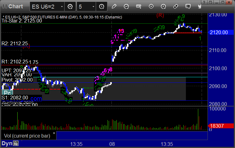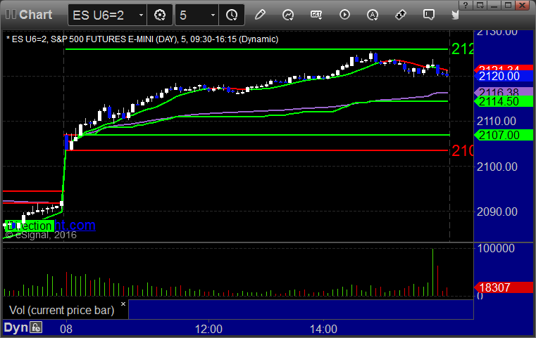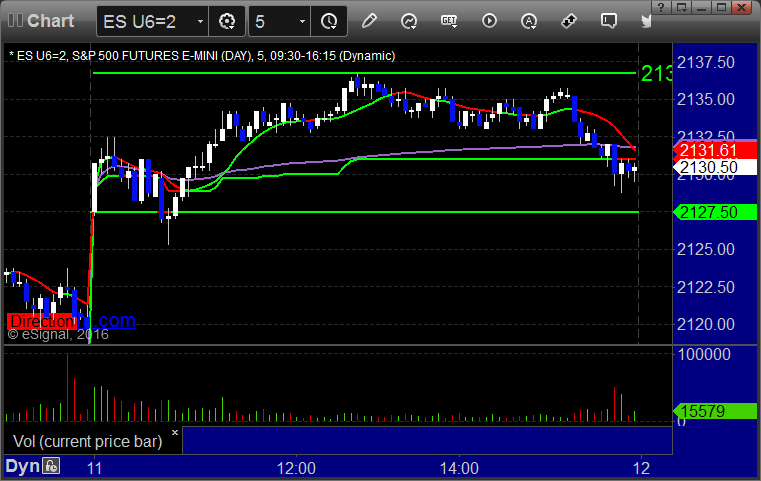 As usual, let's start by taking a look at the ES and NQ with our market directional lines, VWAP, and Comber on the 5-minute chart from today's session: