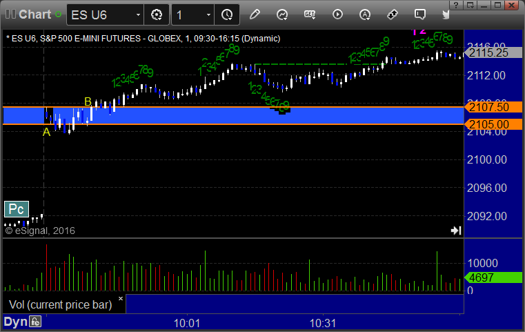 ES Opening Range Play triggered long at A and worked. Triggered short at B and worked: