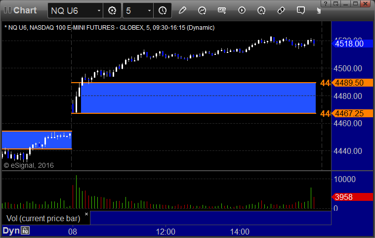Just a reminder that we use half points for ticks on the NQ and not the quarter point measurement that the exchanges switched to in recent years. This allows us to use 6 ticks as a key target as we do on the other contracts. It also keeps the value of a tick at $10, closer to the value of a tick on the other contracts.