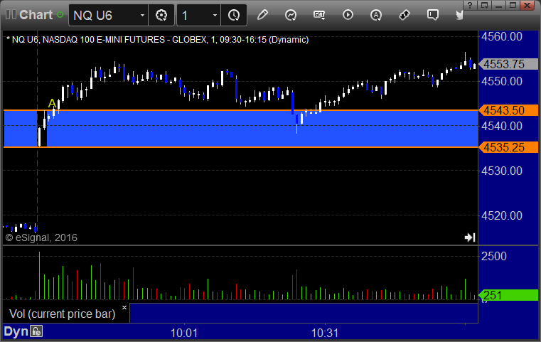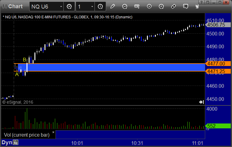NQ Opening Range Play triggered long at A and worked. Triggered short at B and worked: