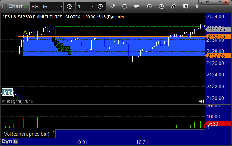 ES Opening Range Play triggered short at A and stopped, triggered long at B and worked: