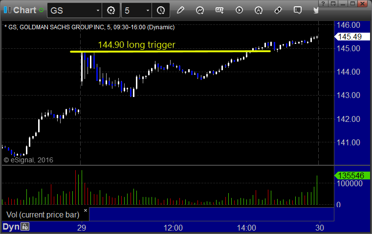 With each stock's recap, we will include a (with market support) or (without market support) tag, designating whether the trade triggered with or without market directional support at the time. Anything in the first five minutes will be considered WITHOUT market support because market direction cannot be determined that early. ETF calls do not require market support, and are thus either winners or losers.
