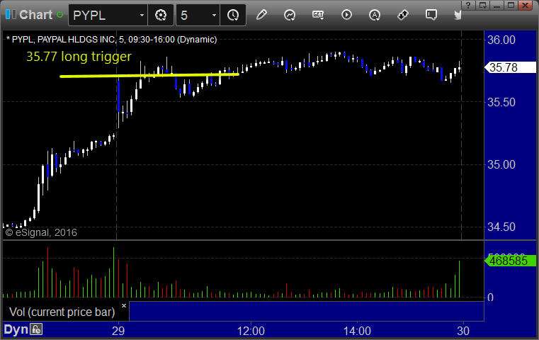 PYPL triggered long (with market support) and didn't do enough either way really, but we will count it as a loser since it dipped under the VWAP: