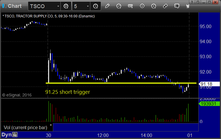 His TSCO triggered short (without market support) and worked: