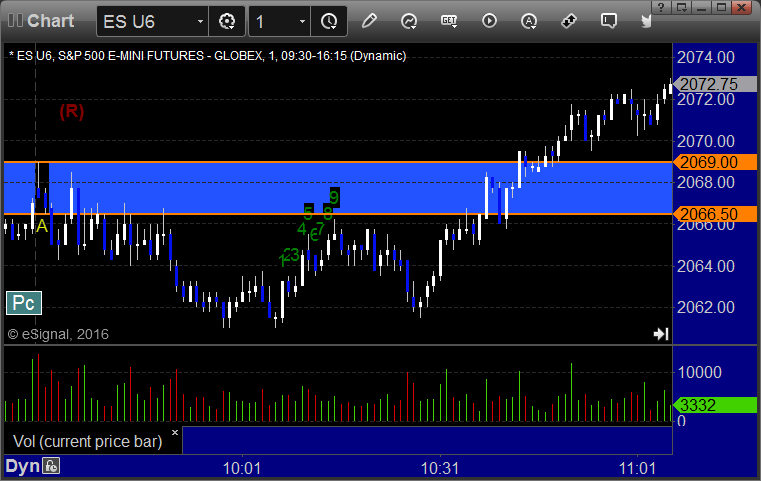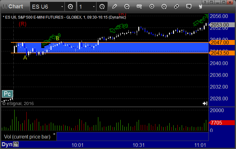 ES Opening Range Play triggered long at A and worked great: