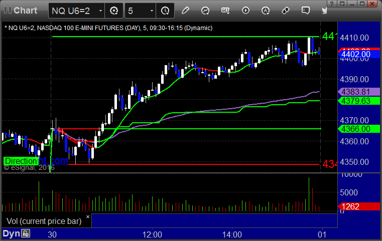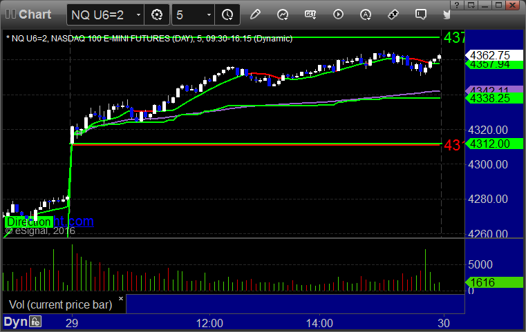 As usual, let's start by taking a look at the ES and NQ with our market directional lines, VWAP, and Comber on the 5-minute chart from today's session: