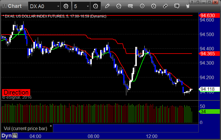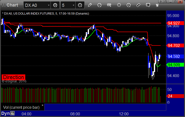 Here's a look at the US Dollar Index intraday with our market directional lines: