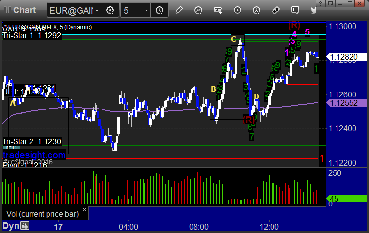 The call triggered short under 1.4205 early to the left of A on the chart, but gave you a long time to take the trade. It hit first target at B, and stopped out of the second half in the morning at C: