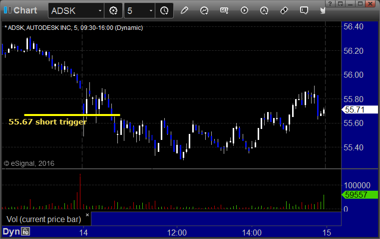 ADSK triggered short (without market support due to opening 5 minutes) and worked enough for a partial: