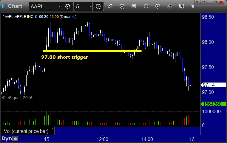 His AAPL triggered short (without market support) and worked eventually, but was not really meant to be taken over lunch ahead of the Fed, was called early on: