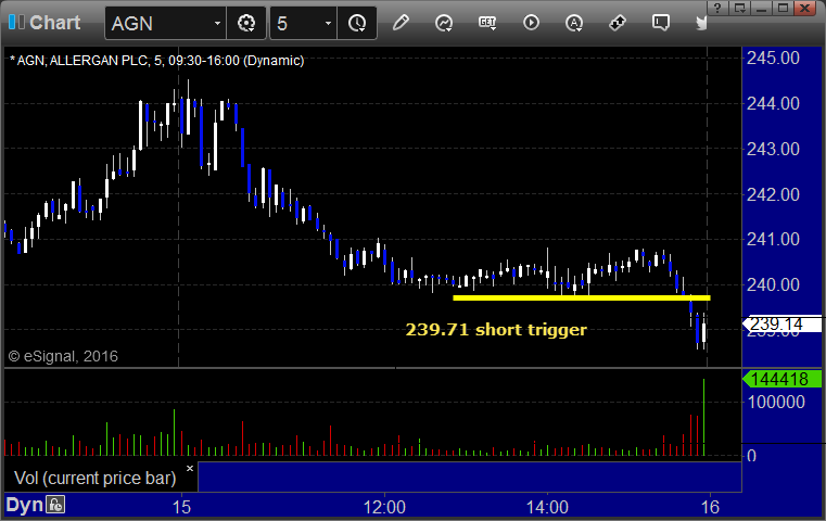 AMGN triggered short (with market support) and worked enough for a partial by the close: