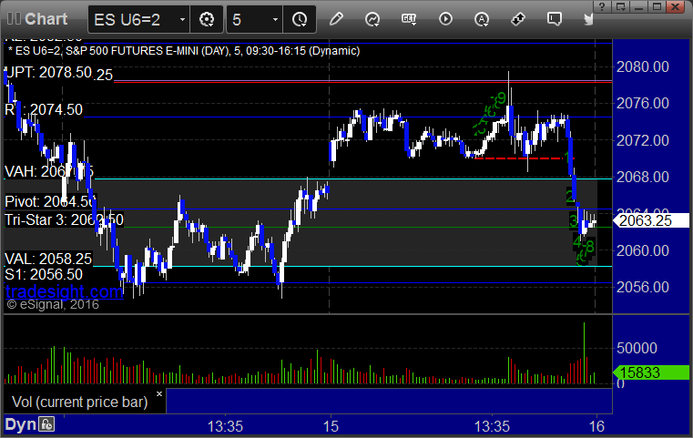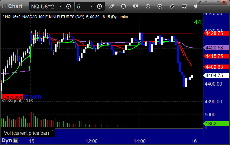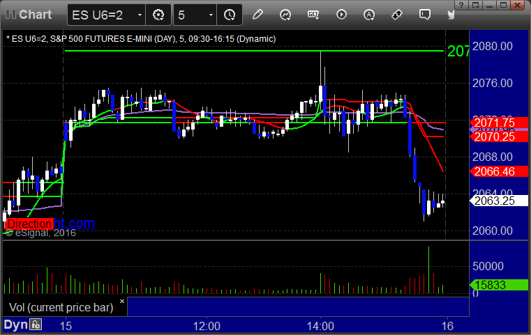 As usual, let's start by taking a look at the ES and NQ with our market directional lines, VWAP, and Comber on the 5-minute chart from today's session: