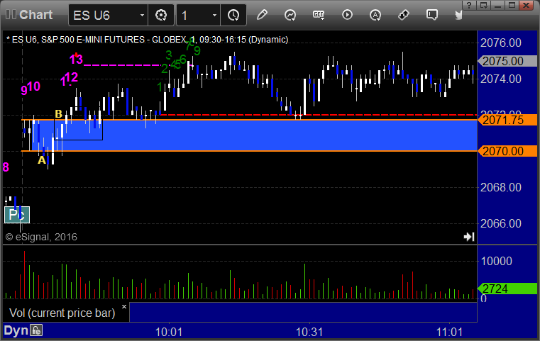 ES Opening Range Play triggered long at A and worked, triggered short at B and worked: