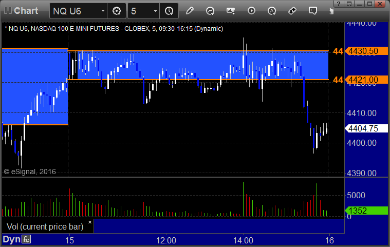 The markets gapped down and filled, then rolled negative for the session without any real urgency as we settled in for the Fed tomorrow on 1.7 billion NASDAQ shares. Opening Range Plays worked great.