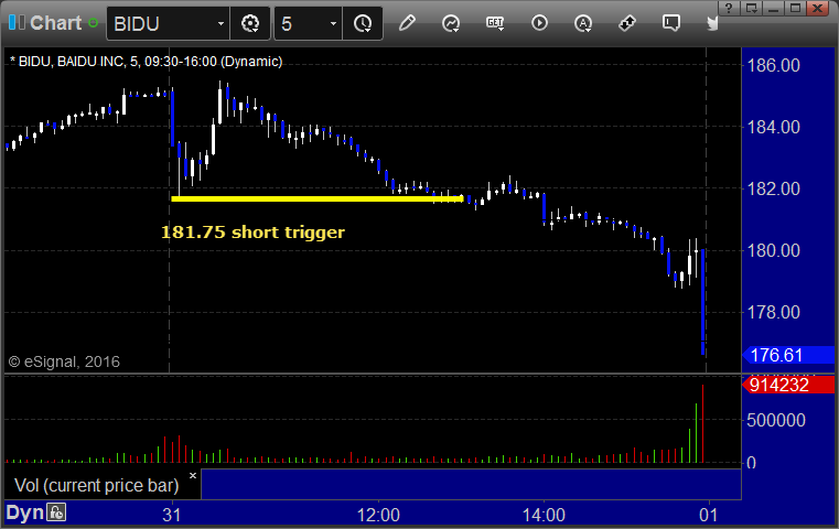 His BIDU triggered short (with market support) and didn't work, worked later: