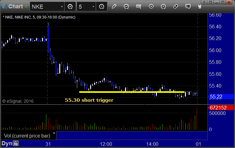 His NKE triggered short (with market support) and didn't go enough in either direction to count, closed slightly in the money: