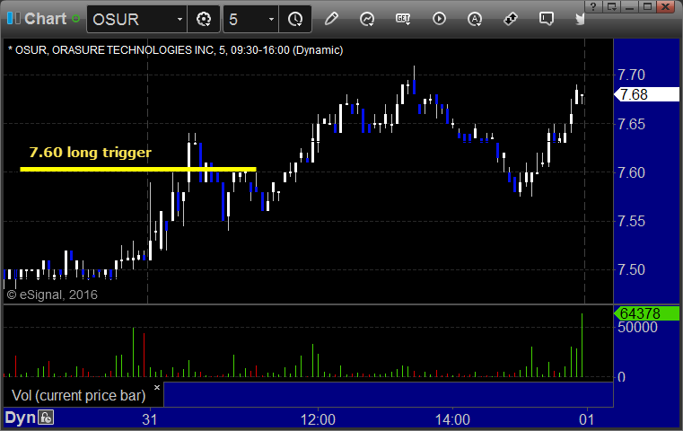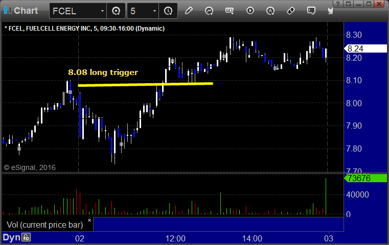 With each stock's recap, we will include a (with market support) or (without market support) tag, designating whether the trade triggered with or without market directional support at the time. Anything in the first five minutes will be considered WITHOUT market support because market direction cannot be determined that early. ETF calls do not require market support, and are thus either winners or losers.