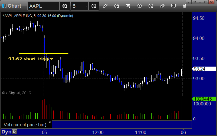 From the Messenger/Tradesight_st Twitter Feed, Rich's AAPL triggered short (without market support due to opening 5 minutes) and worked: