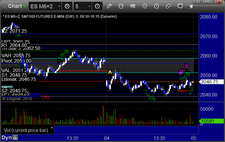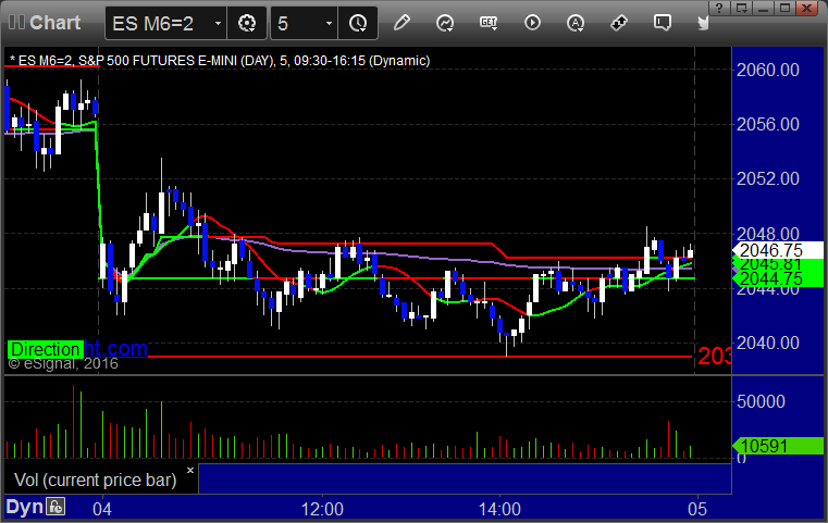 As usual, let's start by taking a look at the ES and NQ with our market directional lines, VWAP, and Comber on the 5-minute chart from today's session: