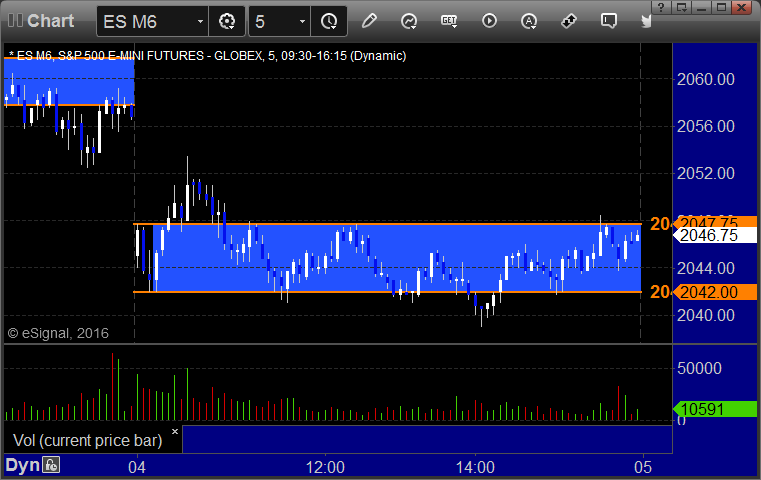 Another day that wasn't super-exciting. NASDAQ volume closed at 1.7 billion shares again, and although the ES range was a little better, not by much. We gapped up and filled, then pushed lower over lunch and then stalled for the last two hours. Opening Range plays were mixed.