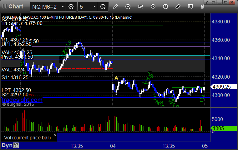 My call triggered long at A at 4316.75 and stopped. I did not re-enter, although that would have worked: