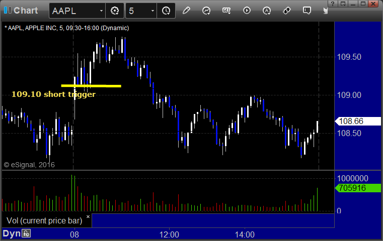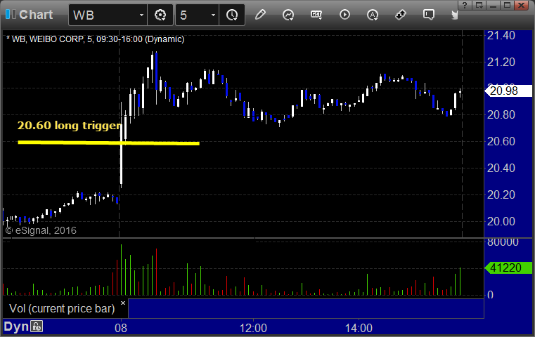 With each stock's recap, we will include a (with market support) or (without market support) tag, designating whether the trade triggered with or without market directional support at the time. Anything in the first five minutes will be considered WITHOUT market support because market direction cannot be determined that early. ETF calls do not require market support, and are thus either winners or losers.