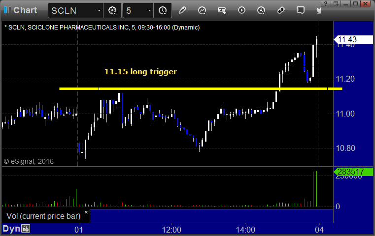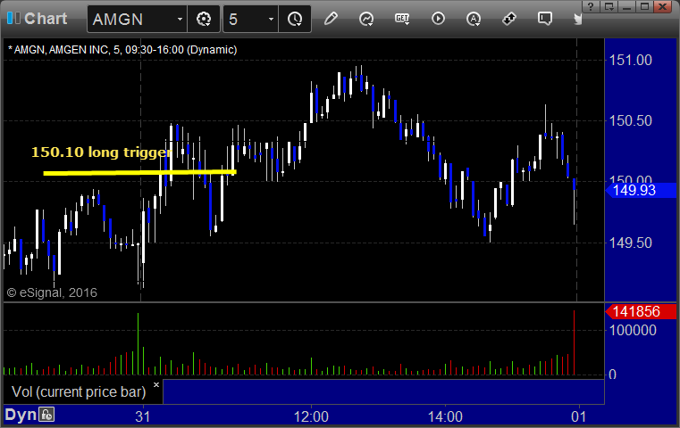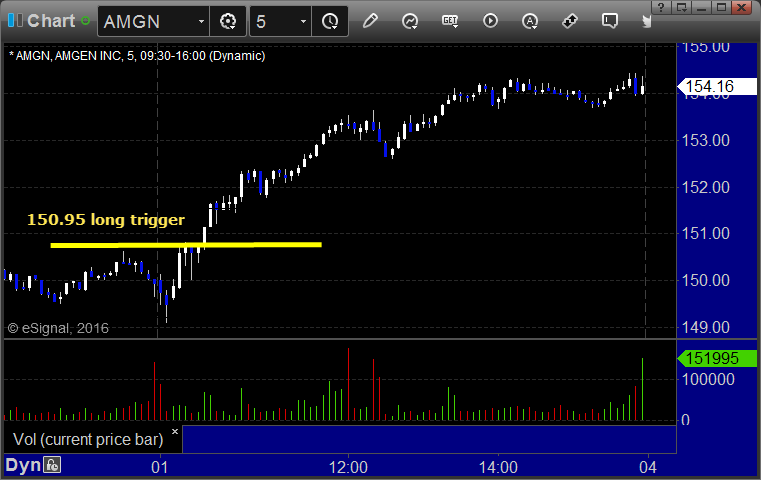 Mark's AMGN triggered long (with market support) and worked enough for a partial: