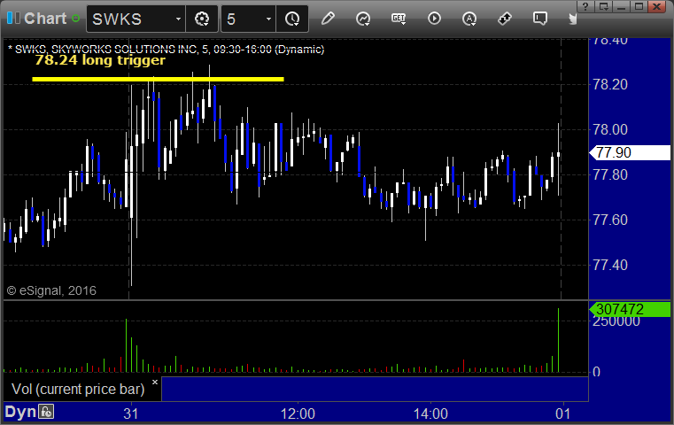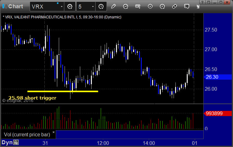 With each stock's recap, we will include a (with market support) or (without market support) tag, designating whether the trade triggered with or without market directional support at the time. Anything in the first five minutes will be considered WITHOUT market support because market direction cannot be determined that early. ETF calls do not require market support, and are thus either winners or losers.